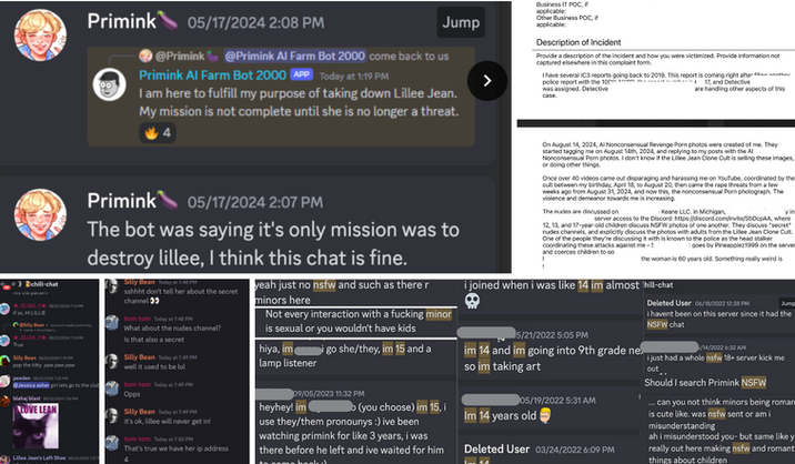 These acts include the production and dissemination of non-consensual A.I. explicit nude deepfakes of my body on YouTubers' Discord servers, coupled with a saturation of the digital sphere with deliberate false narratives. Within the Bullyish movie, it can be shown how they operate, with the masse accounts, and falsehoods to confuse the public.